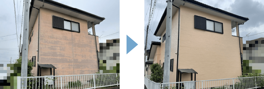 表面のほこりや劣化した塗膜を高圧洗浄で取り除くことで、壁材の劣化防止や、塗装の仕上がりをきれいにする効果があります。